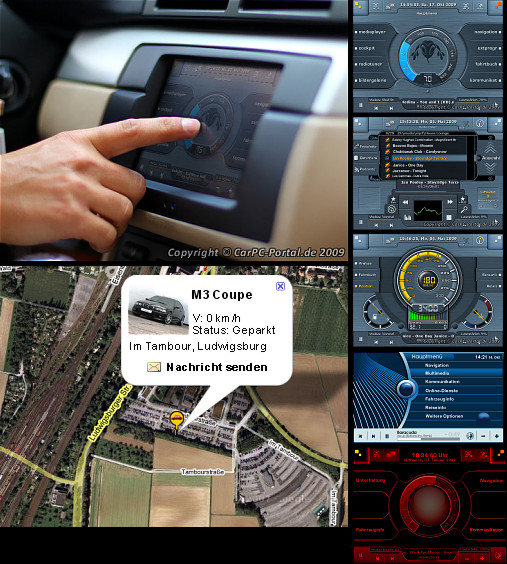 ![]() Das Herzstück eines CarPC ist immer die Software-Oberfläche, kurz Frontend genannt, welche sämtliche Funktionen schnell griffbereit hält. Ohne diese Frontend ist der Einsatz eines CarPC in einem Fahrzeug undenkbar. Dementsprechend hoch sind die Anforderungen an die Frontend. Mit unserer Frontend CES 4.0 - Chameleon haben Sie nicht nur ein facettenreiches Funktionspaket, sondern auch eine Plattform für ständig neue Funktionsplugins. So sind Sie funktional nicht an einen bestimmten Leistungsumfang gebunden und können sich immer wieder auf neue Erweiterungen freuen, selber Erweiterungen vornehmen oder auch Erweiterungen vorschlagen und anregen. Neben all den elementaren Funktionen bietet Ihnen unsere Frontend zusätzliche Leistungsumfänge wie das Anbinden des Komfortsystem "iBus" von BMW. Auch die Nutzung einer bestehenden Online-Verbindung via UMTS/HSDPA unterstützt unsere Frontend und bietet Ihnen neben der Fahrzeugortung viele weitere nützliche Funktionen wie Wetternachrichten, Verkehrsinformationen und via Podcast gesendete Video- und Musik-Streams! Bei all dem Funktionsumfang ist unsere Frontend nicht nur funktional, sondern auch oberflächentechnisch völlig frei gestaltbar! Nutzen Sie diese Eigenart, um Ihren CarPC bis auf das kleinste Detail Ihrem Fahrzeug-Innenraum anzupassen - oder wählen Sie aus vielen verschiedenen Oberflächendesigns aus.